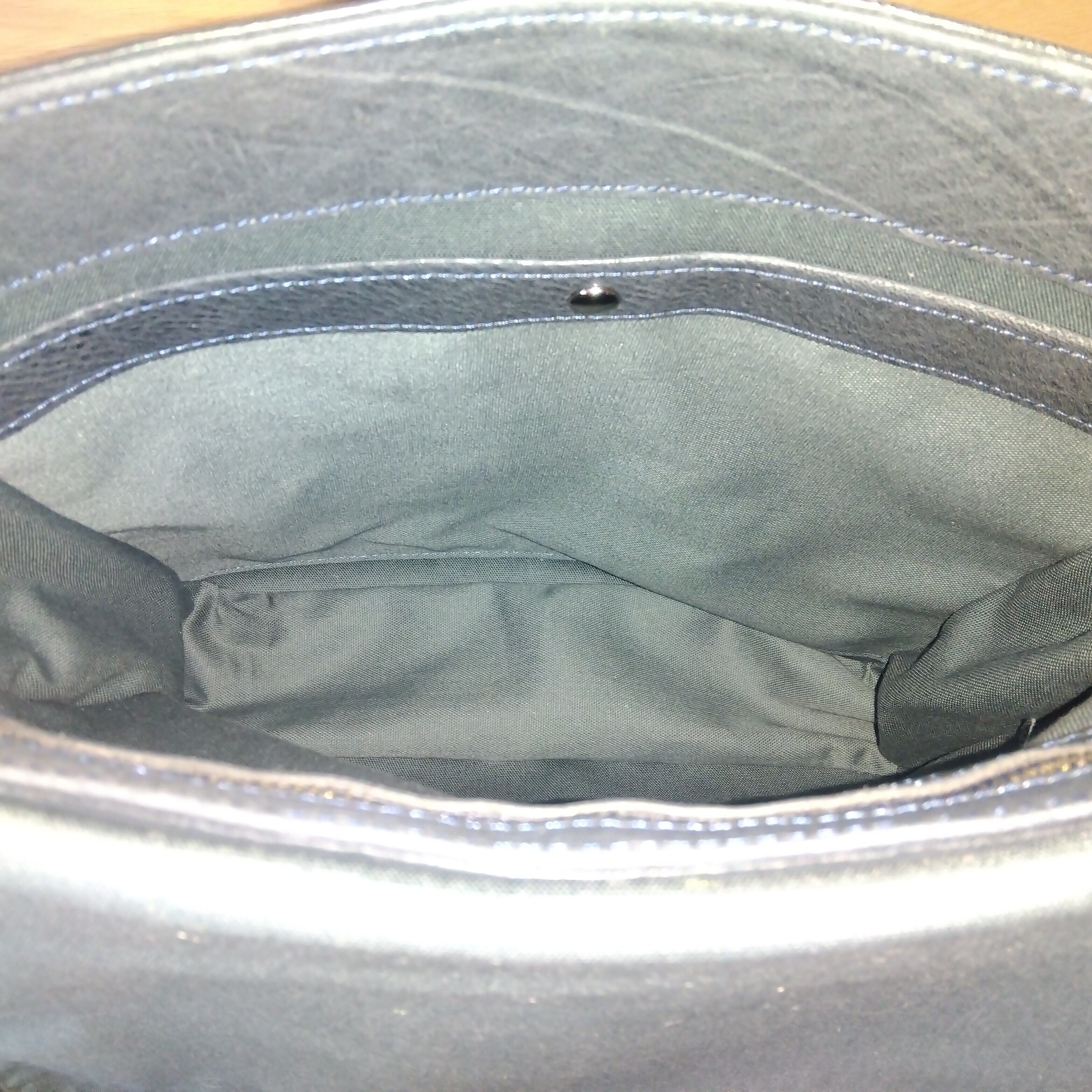 内装には綿100%のコットンオックスを採用しており、アッシュブルーグレーの優雅な色合いが、あなたの日常に洗練された印象を与えます。ポケットも充実しており、バネホック付きのポケットとファスナーポケットを備えているため、小物や財布も安心して収納できます。