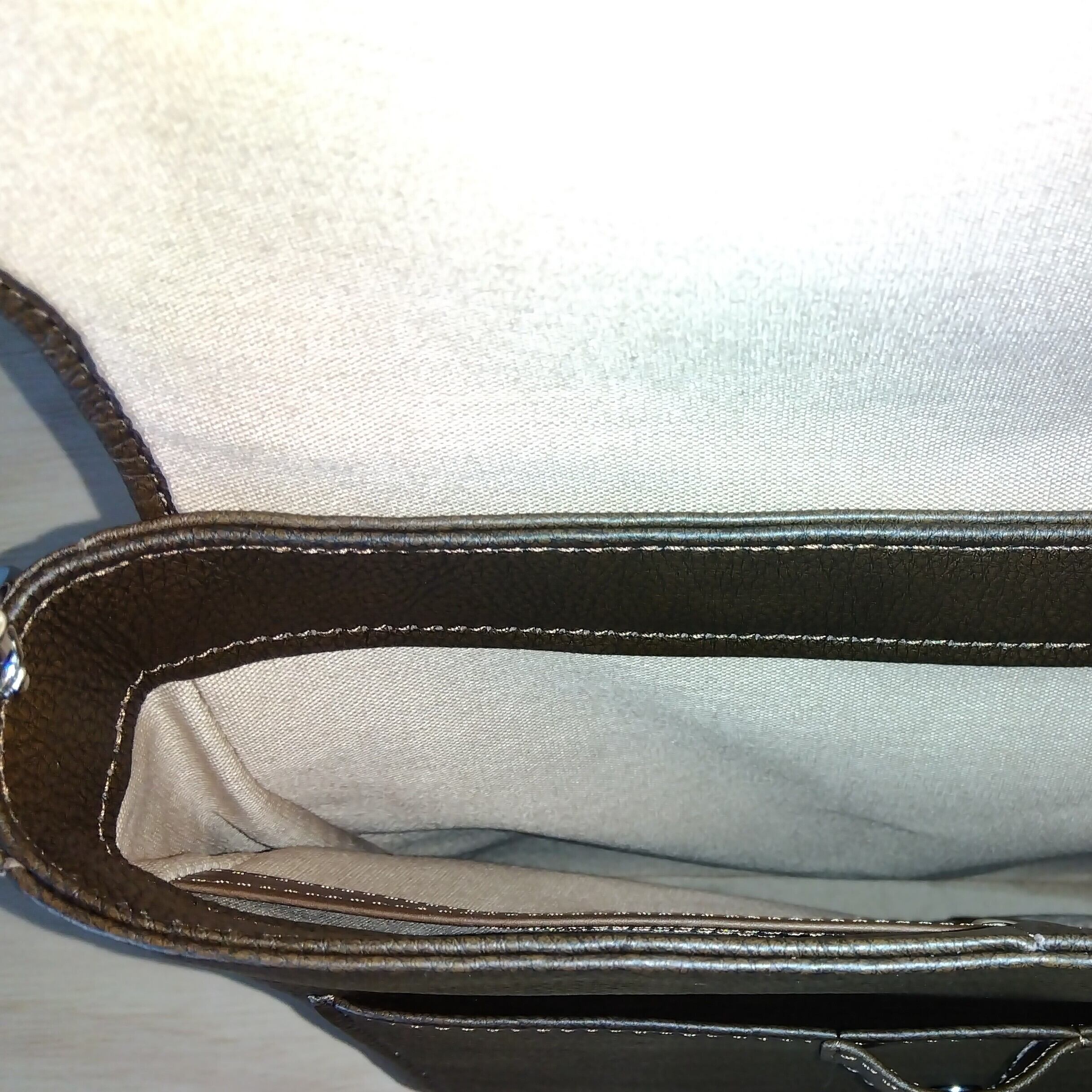 内装には綿100%のコットンオックスを採用しており、モカの優雅な色合いが、あなたの日常に洗練された印象を与えます。ポケットも充実しており、バネホック付きのポケットとファスナーポケットを備えているため、小物や財布も安心して収納できます。